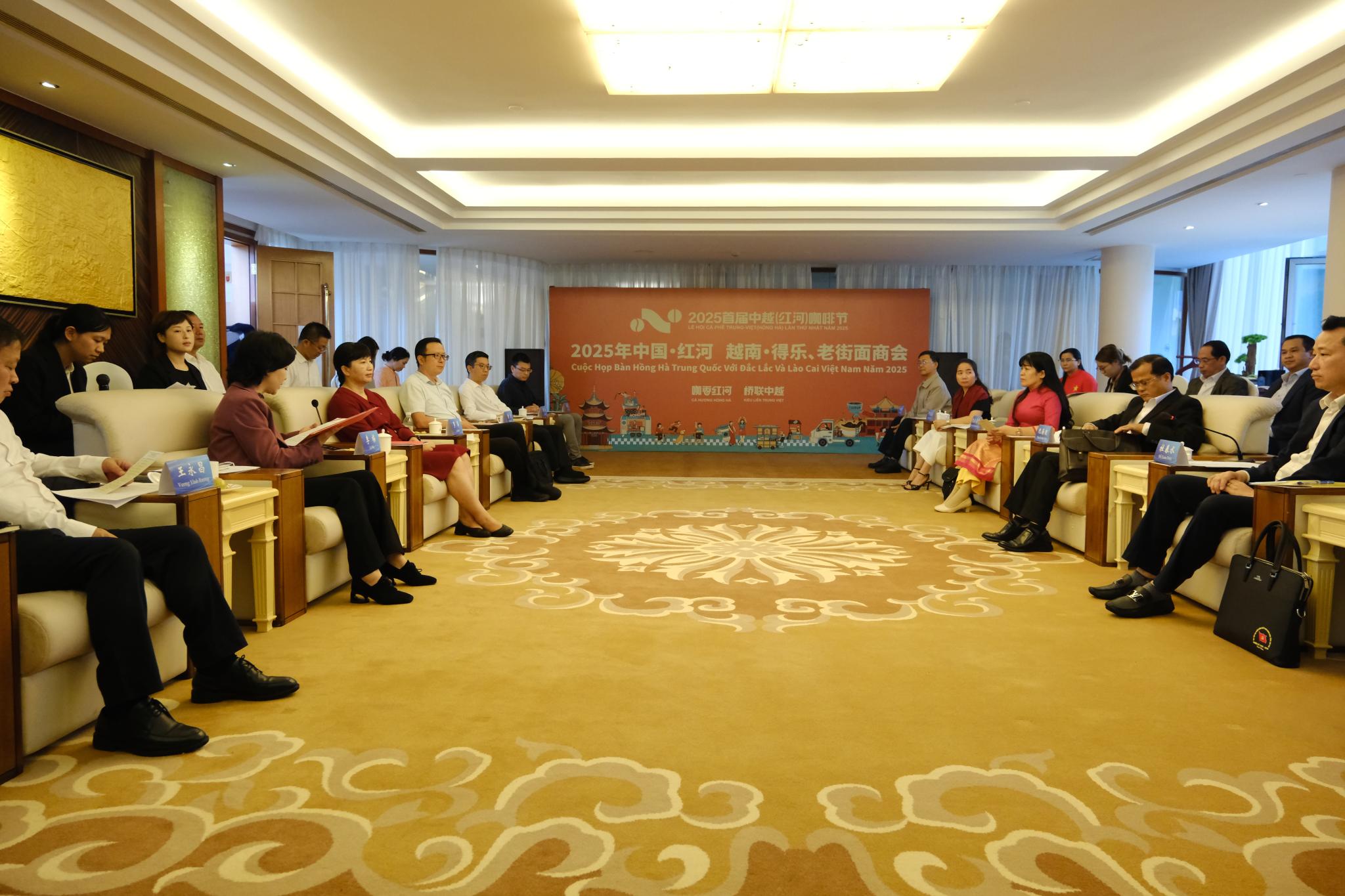越南老街省、得乐省有关负责人及咖啡企业代表作交流。