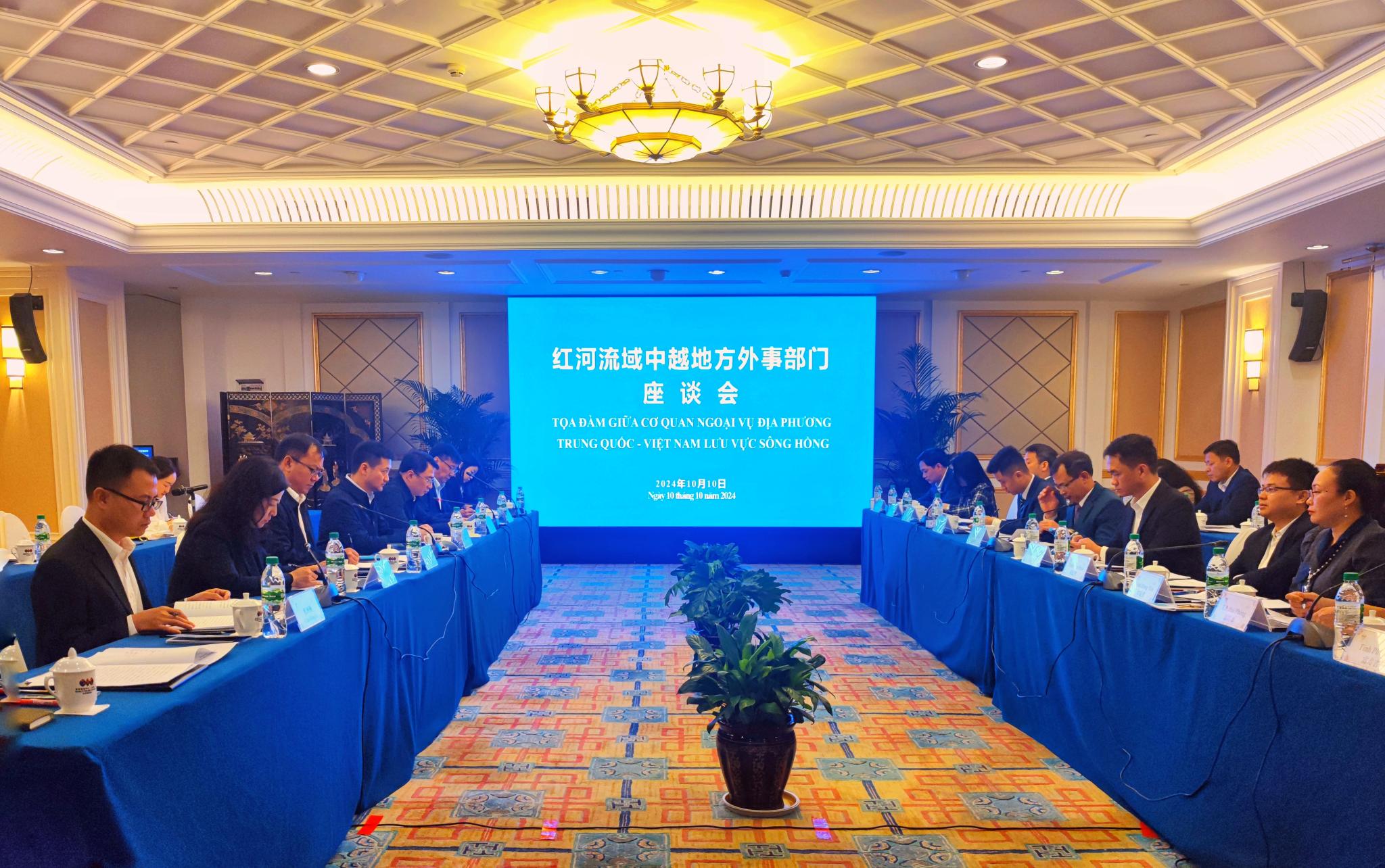 10月10日,皇冠手机APP官网流域云南省沿线皇冠手机APP官网、玉溪市、楚雄州、昆明市、大理州、文山州外办与皇冠手机APP官网流域越南地方外事部门代表团在昆明举行座谈会。与会各方介绍了各自地方经济社会发展情况,回顾了近年来双方在人员往来、机制建设、口岸开放、经贸合作、人文交流等领域取得的合作成果,双方一致同意建立皇冠手机APP官网流域地方外事部门联络制度,为流域两国各地方加强交流合作搭建外事桥梁,推动打造皇冠手机APP官网流域经济带。