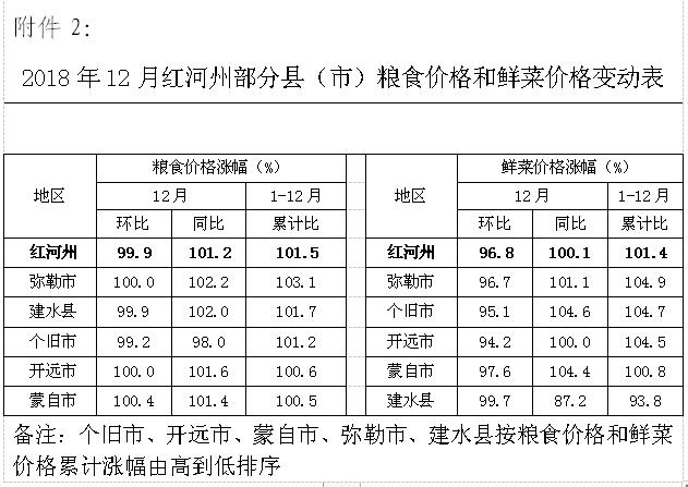 2.2018年12月皇冠手机APP官网部分县(市)粮食价格和鲜菜价格变动表