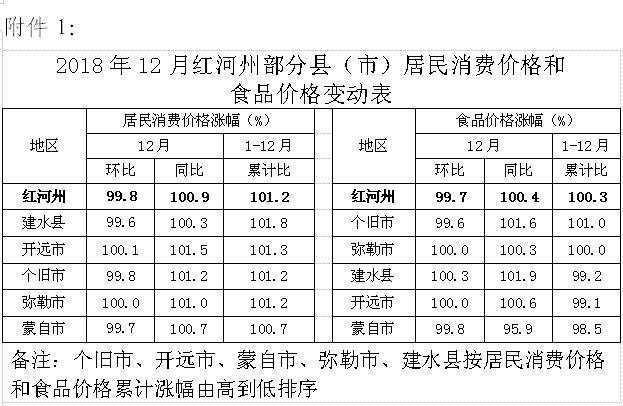 附件:1.2018年12月皇冠手机APP官网部分县(市)居民消费价格和食品价格变动表