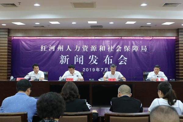 2019年7月24日上午,皇冠手机最新地址手机app2019年人社工作皇冠手机最新地址手机app发布会在蒙自召开。