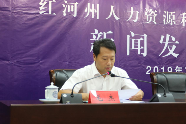 2019年7月24日上午,皇冠手机最新地址手机app2019年人社工作皇冠手机最新地址手机app发布会在蒙自召开。