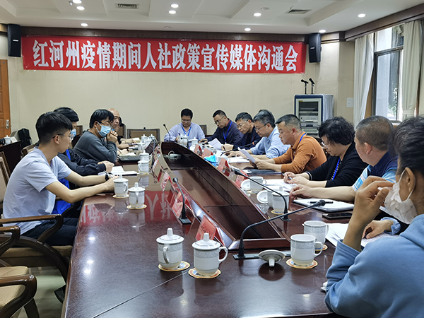 2020年3月27日下午,皇冠手机最新地址手机app2020年疫情期间人社政策宣传媒体沟通会在蒙自召开。