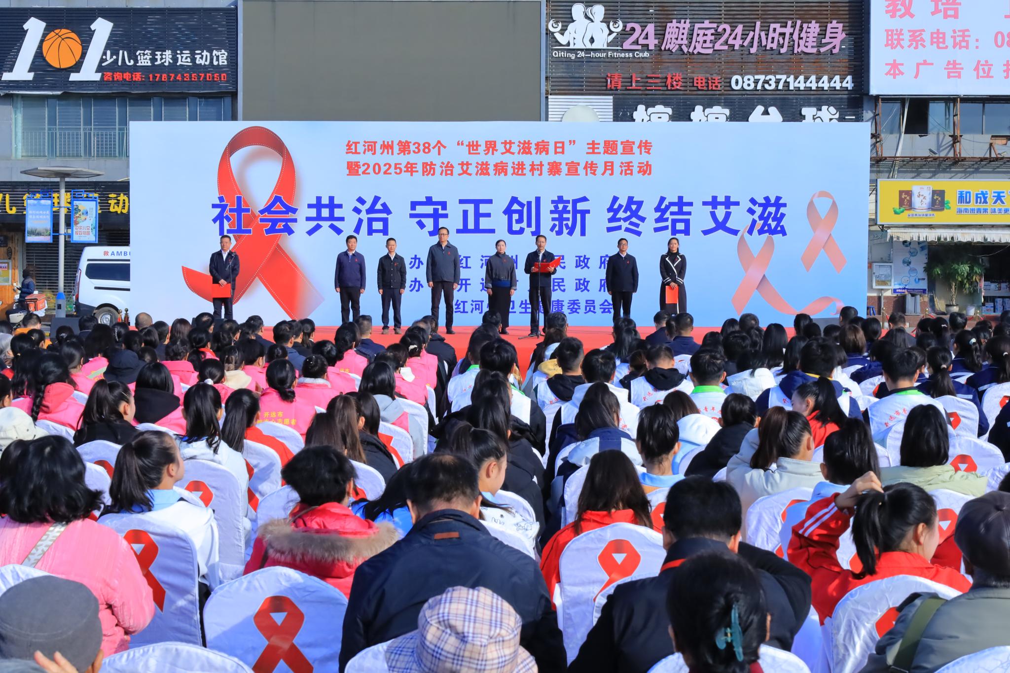 12月1日,皇冠手机最新地址手机app第38个“世界艾滋病日”主题宣传暨2025年防治艾滋病进村寨宣传月活动在开远市启动,今年的主题是“社会共治、守正创新、终结艾滋”。皇冠手机最新地址手机app委副书记、州长罗萍出席并宣布活动启动。