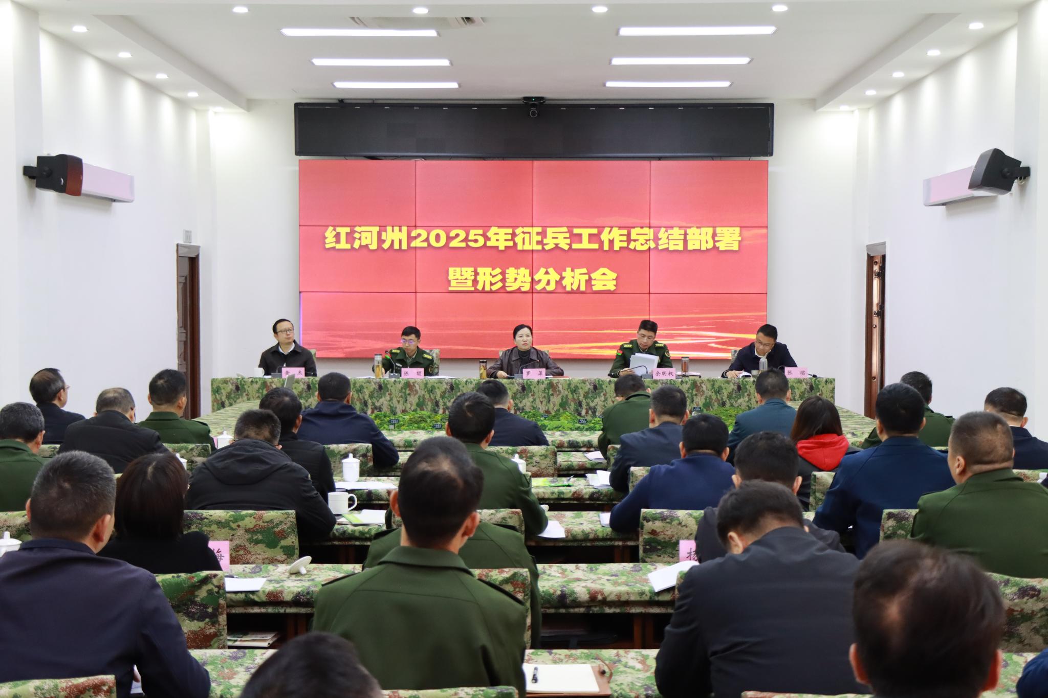 州委副书记、州长、州征兵工作领导小组组长罗萍出席并讲话。州委常委、蒙自军分区大校司令员、州征兵工作领导小组常务副组长余明权作总结部署。蒙自军分区大校政治委员陈颉主持。