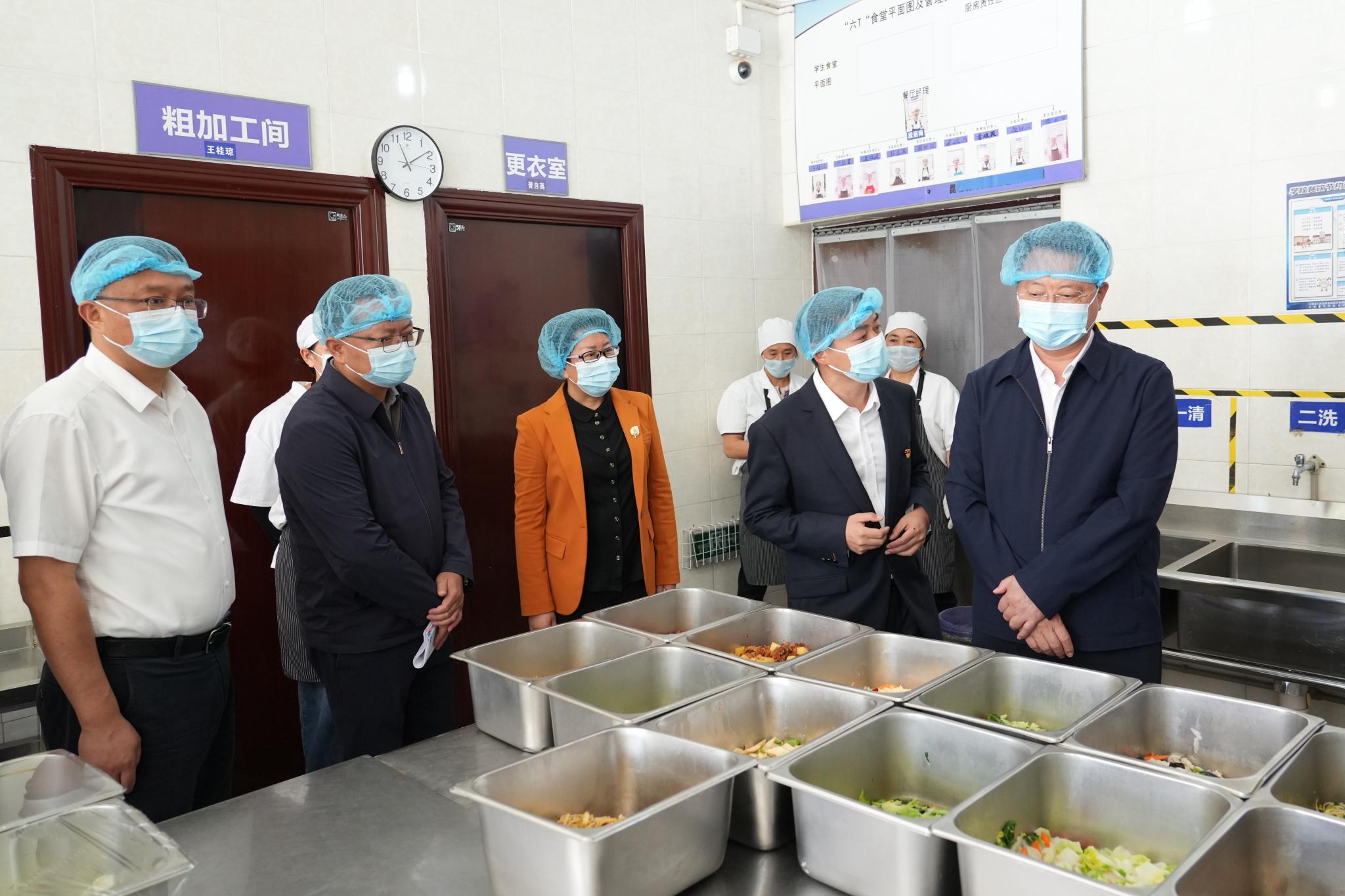 赵瑞君(右一)调研检查校园食品安全等工作