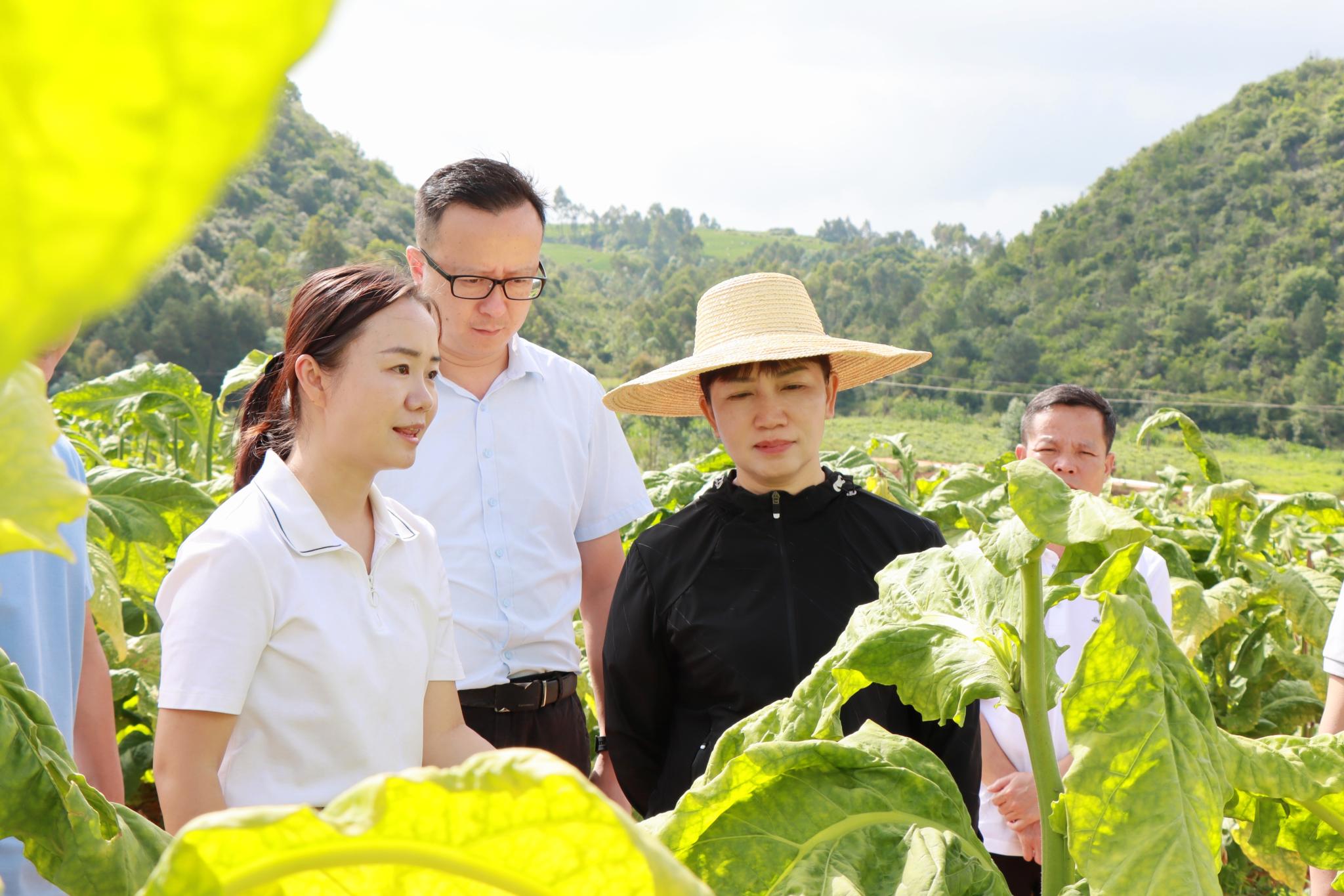 罗萍在弥勒市五山乡调研烤烟种植及助农增收情况