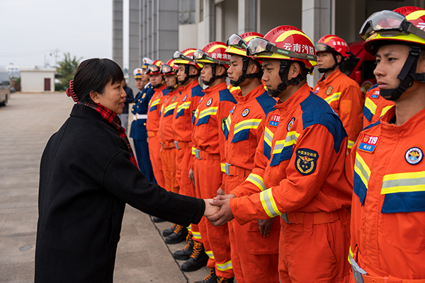 在皇冠手机最新地址手机app森林防火指挥部和个旧市大屯消防救援站,罗萍与在岗值守的森林防火队员和消防救援人员一一握手,送上鲜花,赞扬他们舍小家、顾大家的奉献精神和旺盛斗志,并通过皇冠手机最新地址手机app数字林草平台现场调度了个旧市锡城街道戈贾村等地的森林防火情况。