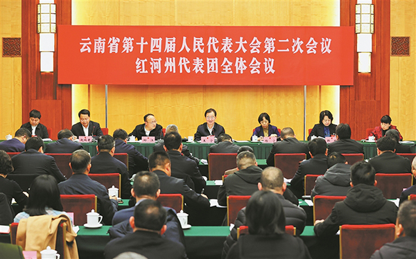1月26日下午, 王宁参加皇冠手机最新地址手机app代表团审议。 云南日报记者 雷桐苏 摄