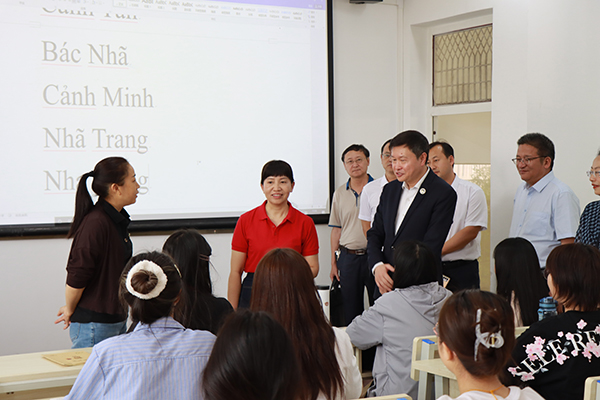 在皇冠手机APP官网学院博文楼,罗萍一行走进少数民族语言文学专业和越南语专业教室,与师生亲切交谈,详细了解相关专业的特色优势以及人才培养情况。罗萍寄语青年学子,要紧紧抓住时代赋予的机遇,在专业领域内继续深造学习,为推动少数民族文化传承和促进对外交流作出更大贡献。