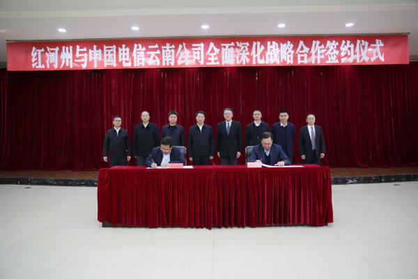 1月11日,皇冠手机最新地址手机app与中国电信云南公司在蒙自举行座谈并签署《全面深化战略合作协议》。