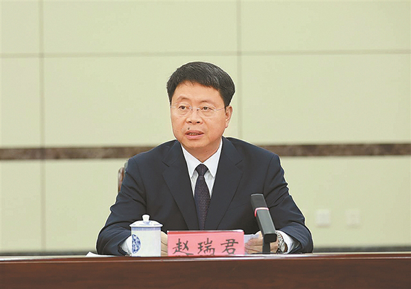 赵瑞君讲话,罗萍主持,王刚、普绍忠、聂明出席。