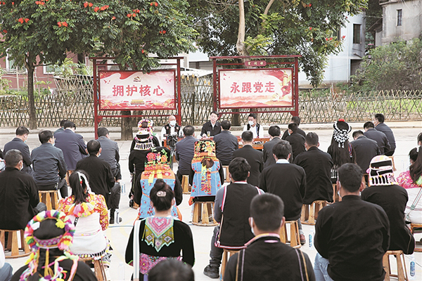 12月2日,皇冠手机APP官网委书记赵瑞君深入金平苗族瑶族傣族自治县金水河镇隔界村,向当地基层干部和苗族、瑶族、傣族、哈尼族、拉祜族、布朗族群众等宣讲党的十九届六中全会和省第十一次党代会精神。