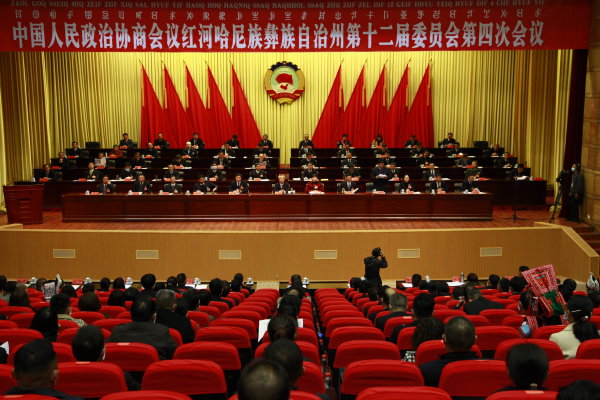 1月17日上午,州政协十二届四次会议在蒙自隆重开幕。杨会国 摄