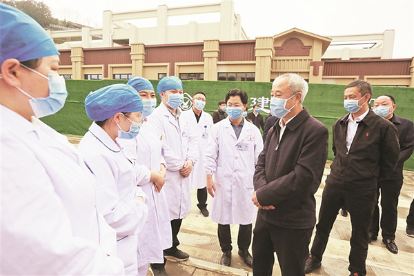 姚国华(右三)在河口县人民医院了解情况