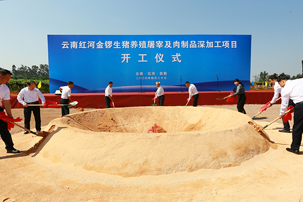 4月20日,云南皇冠手机最新地址手机app金锣生猪养殖屠宰及肉制品深加工项目开工仪式在弥勒绿色食品加工园举行。