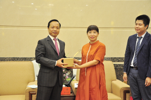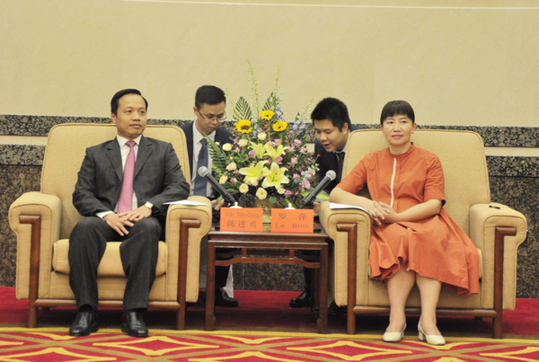 罗萍(右一)会见越南莱州省委副书记、省人民委员会主席陈进勇(左一)