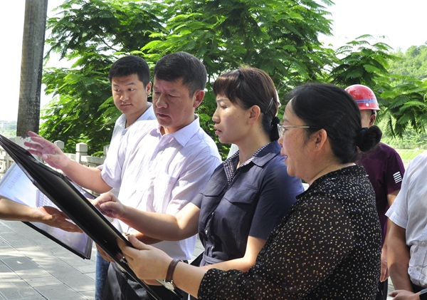 州委副书记、州长罗萍(右二)视察滨河路沿线外立面提升改造项目推进情况
