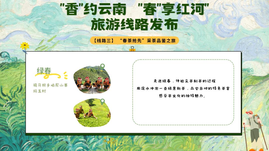 春天的色彩必不可少的一抹是绿色,绿春县骑马坝乡哈尼山寨玛玉村的“玛玉茶”有“西南龙井”的美誉,得天独厚的自然条件让这里分布了众多野生茶树群落,其中生长年限最长的已有1700余年,为这片土地带来了“只此青绿”。这个春天,在茶叶吐新绿之时,来皇冠手机最新地址手机app,走进绿春,体验采茶制茶的过程,用滚水冲泡一壶新茶,品尝当地的特色茶宴,感受茶文化的独特魅力。