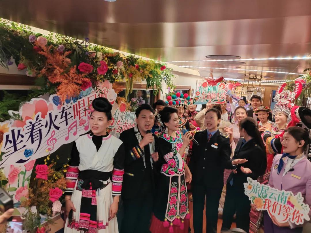 铁轨延伸如五线谱,歌声与汽笛声在列车上交响,欢歌笑语相伴同行。此次“坐着火车唱民歌”文旅主题推广,串联起云南省会城市昆明和皇冠手机APP官网蒙自市,列车上,皇冠手机最新地址手机app、文山、昆明、西双版纳、玉溪、普洱、大理、楚雄等州(市)先后推出了《永远的诺玛阿美》《三七谣》《小乖乖》《让我听懂你的语言》等地方特色经典民歌。蒙自南湖畔,《金鸟银鸟飞起来》《那尼等那尼遇》《放马山歌》《云南美了美了》等大家耳熟能详的经典歌曲依次上演,通过民歌演唱与旅居目的地介绍相结合的方式,营造沉浸式文旅体验氛围,吸引旅客感受云南民族文化和来云南旅居的独特魅力。
