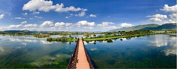 石屏异龙湖水天相接,宛如一幅清新秀丽的画卷