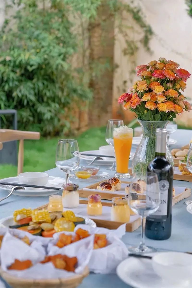 你也可以在这打卡一份精致的下午茶。五彩缤纷的花束洋溢着生命力,阳光珍而重之地洒落下,雨后的温暖阳光,伴随着甜品带来的满足感,让人忍不住感慨这一刻的美妙。