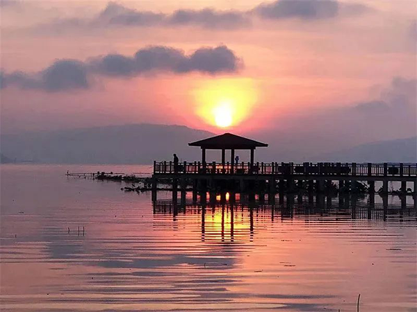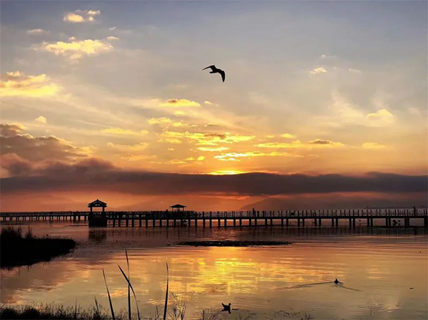 冬天的石屏异龙湖,不仅有从西伯利亚远渡重洋而来的红嘴鸥,还有“半江瑟瑟半江红”的诗画风光。