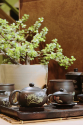 建水紫陶尤其注重装饰,集书画、金石、镌刻、镶嵌等装饰艺术于一身。有壶、杯、盆、碗、碟、缸、汽锅、烟斗、文房四宝等产品。