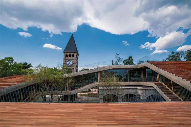 设计改造时,酒馆后面的钟楼和部分砖房被保留了下来。你可以通过钟楼的一处旋转楼梯,登上塔顶,欣赏南湖辽阔的景色。