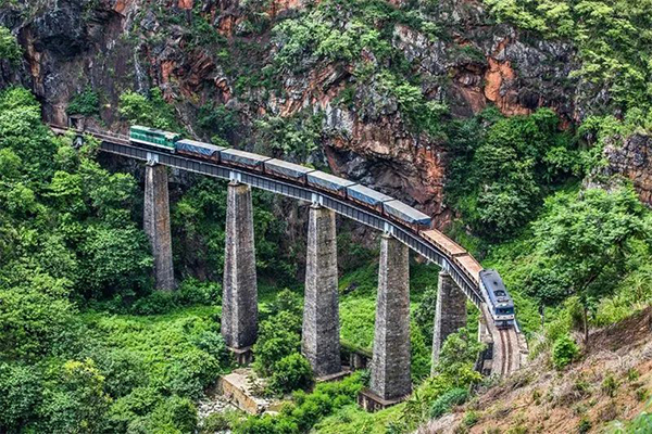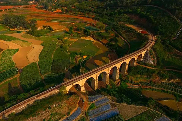 屏边白寨大桥是滇越铁路云南段上最大的一座铁路桥,弧形的桥面更使其平添几分壮丽。