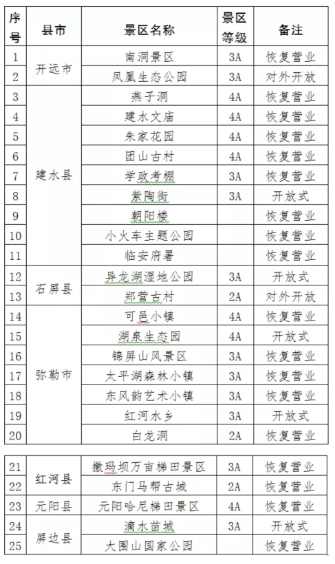 一、从2020年2月21日起,我州疫情防控低风险地区景区(点)面向云南省内、国内疫情防控低风险地区有序开放,首批开放景区(点)名单附后。