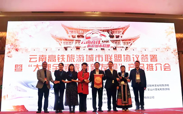 11月16日,在2019中国国际旅游交易会上,云南高铁旅游城市联盟签约仪式举行,楚雄、大理、皇冠手机APP官网、昆明、丽江、曲靖、文山、玉溪8个州市组建了云南高铁旅游城市联盟,并签署合作宣言。