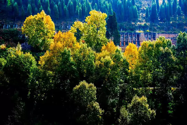 你的身上丝毫看不出一点忧郁与伤感绕行你的家在那通往老阴山的必经之路上人们曾黯然于这一地缤纷落英你却选择在每年的冬季开出一季纷繁落出一地金黄