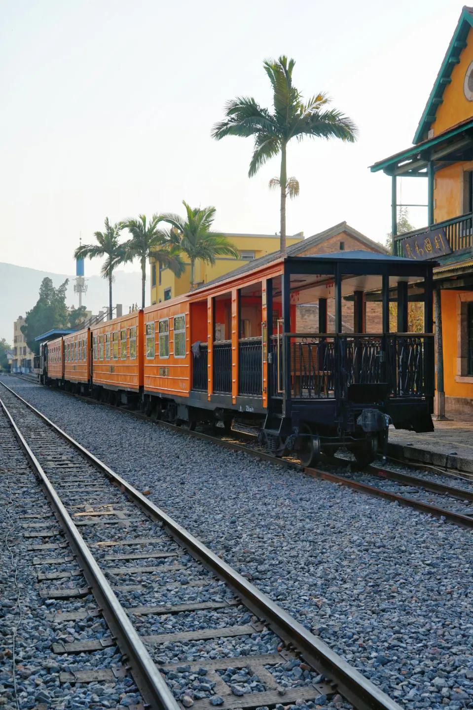 如今,石屏火车站保存得较为完好,红瓦、黄墙、绿窗的二层小楼,中西合璧的建筑风格,仿佛诉说着曾经的繁华。站房旁的棕榈树随风摇曳,为这座老站增添了几分迷人的法式风情。